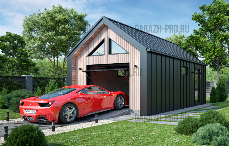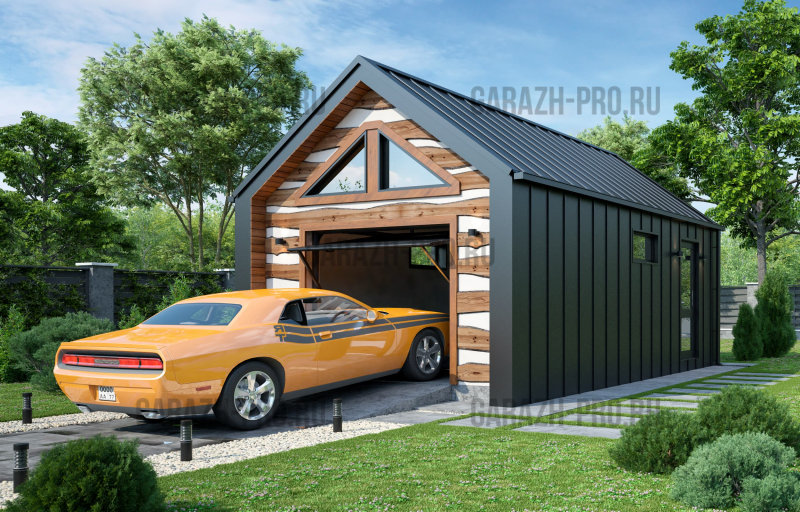 Современный гараж в стиле "барнхаус" на 1 автомобиль.