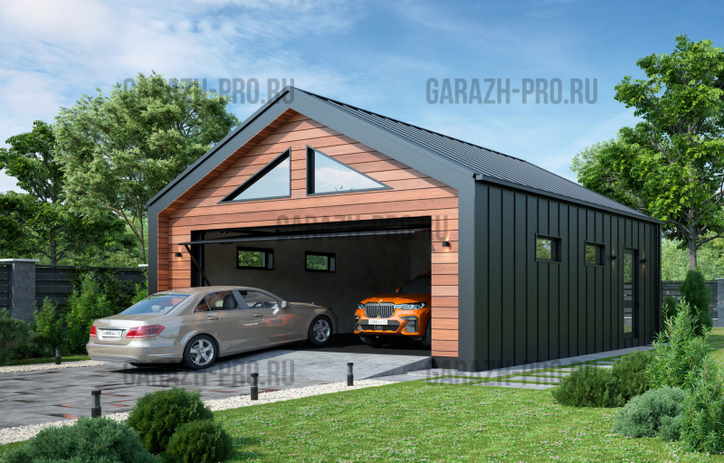 Современный гараж в стиле "барнхаус" на 2 автомобиля.