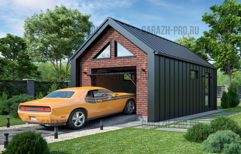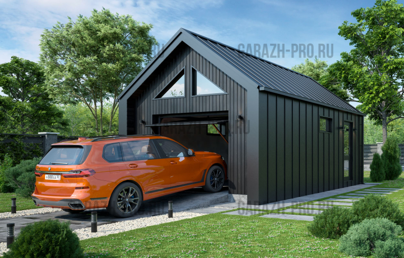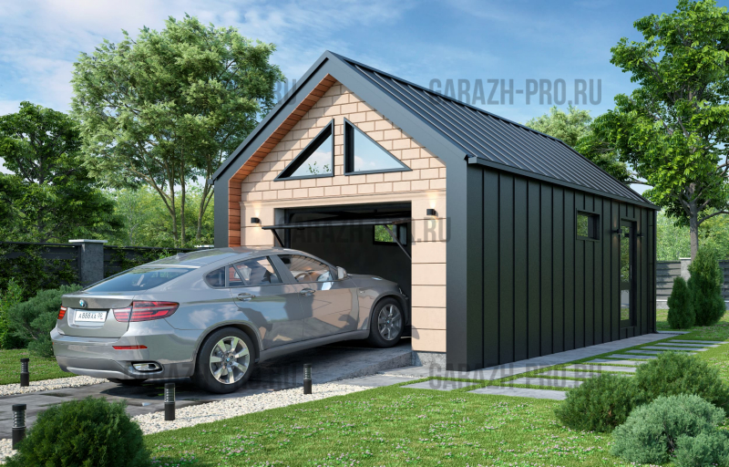 Современный гараж в стиле "барнхаус" на 1 автомобиль.