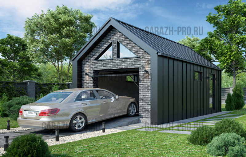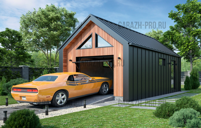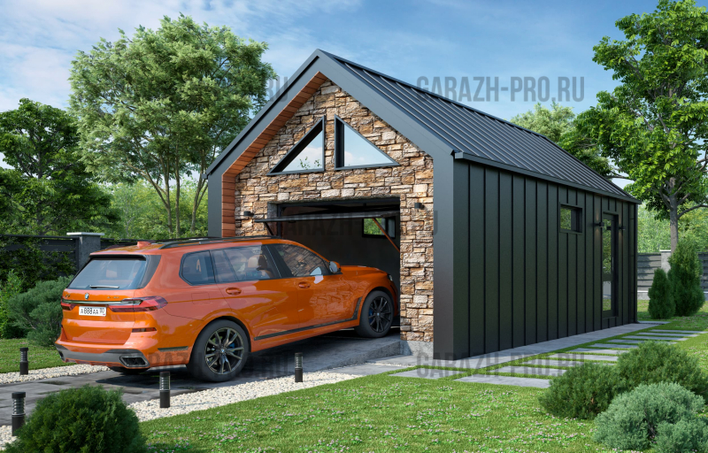 Современный гараж в стиле "барнхаус" на 1 автомобиль.