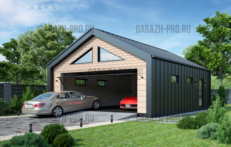 Современный гараж в стиле "барнхаус" на 3-4 автомобиля.