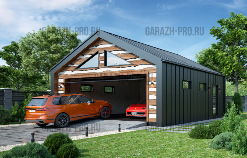 Современный гараж в стиле "барнхаус" на 2 автомобиля.