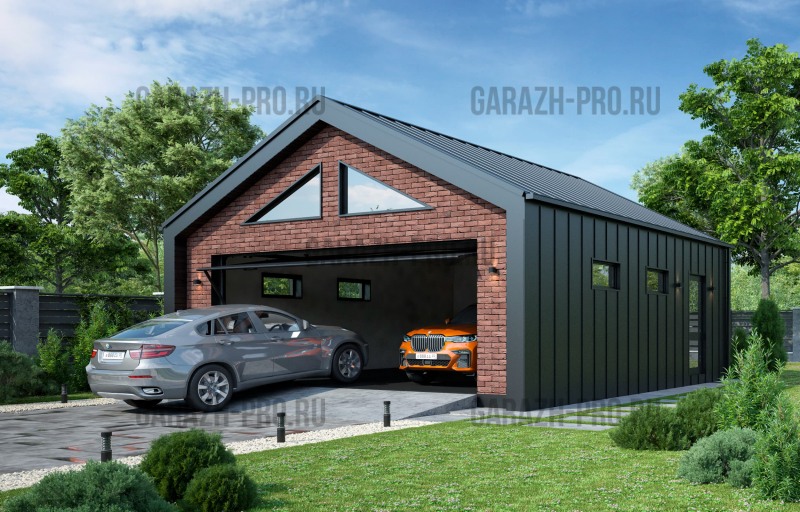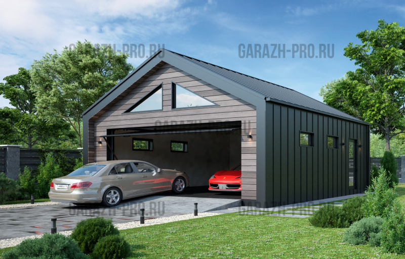 Современный гараж в стиле "барнхаус" на 2 автомобиля.