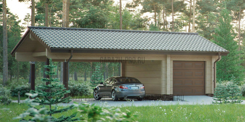 Гараж из клееного бруса с навесом на 2 авто 12х6