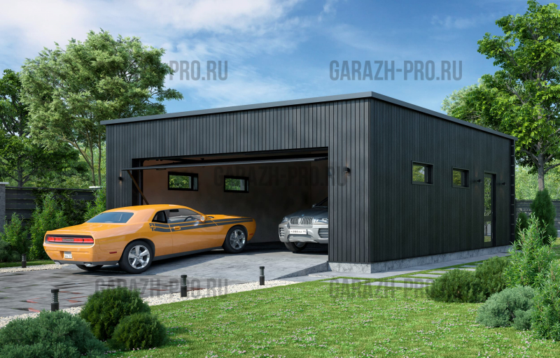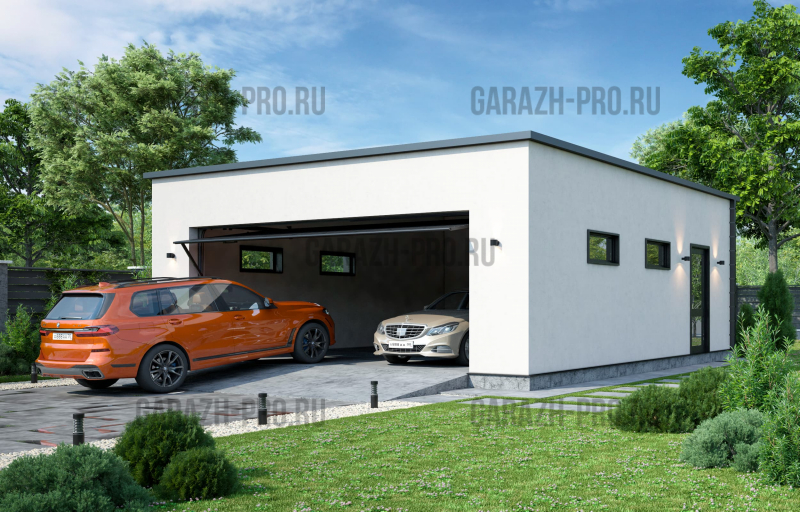 Современный гараж в стиле "хай-тек" на 2 автомобиля.