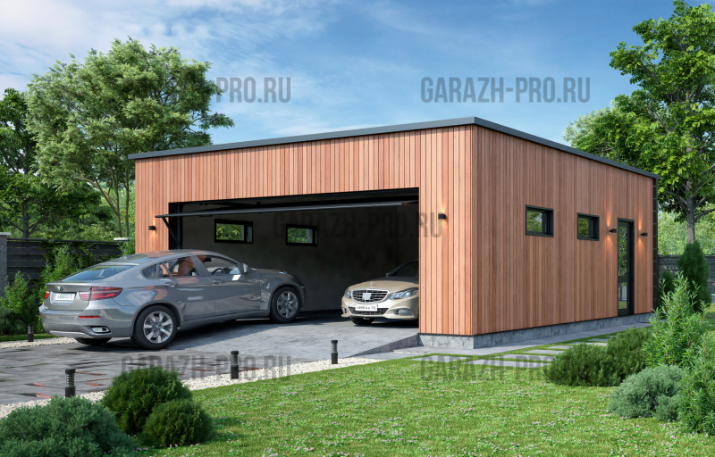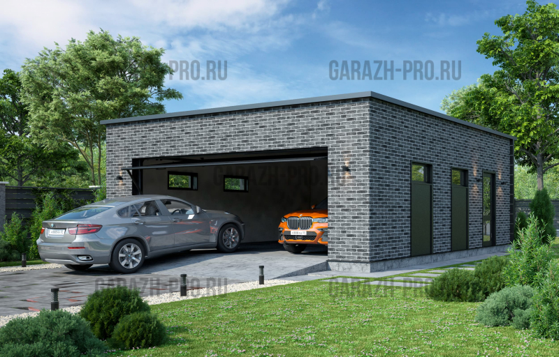 Современный гараж в стиле "хай-тек" на 2 автомобиля.