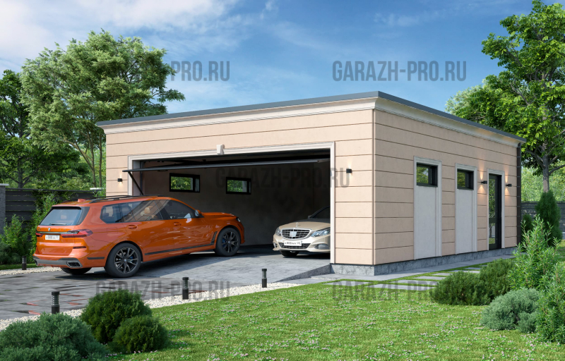 Современный гараж в стиле "хай-тек" на 2 автомобиля.