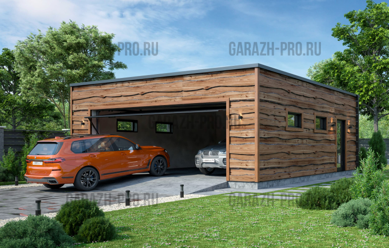 Современный гараж в стиле "хай-тек" на 2 автомобиля.