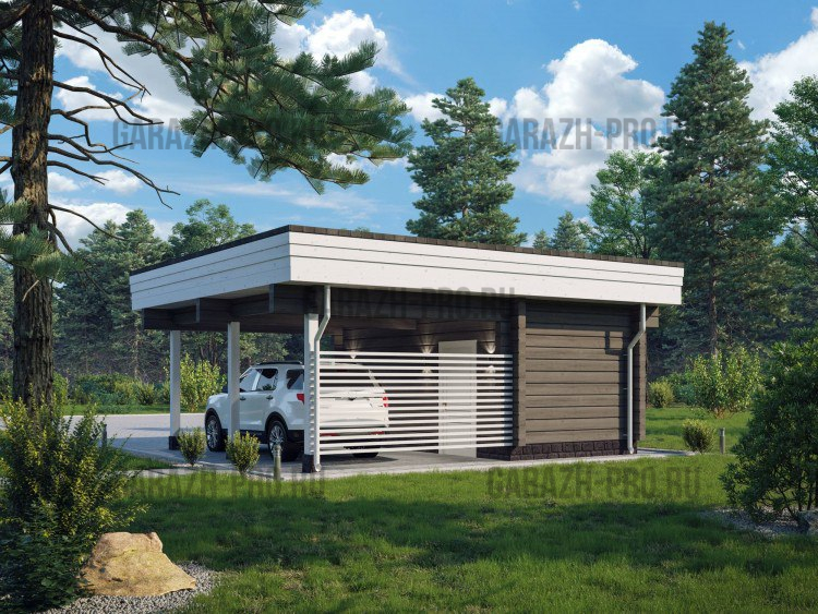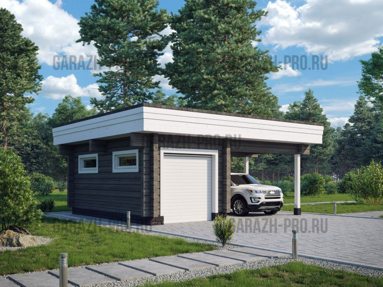 Гараж с прямой кровлей и навесом 6х7