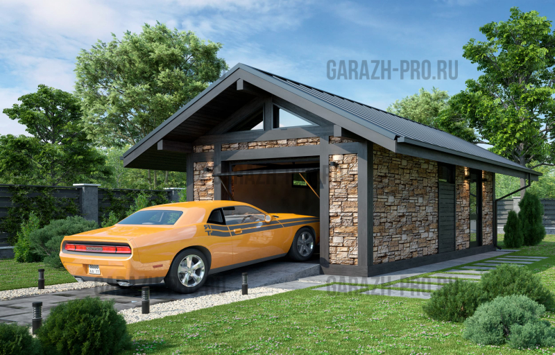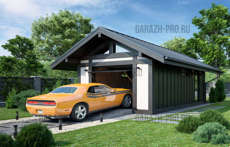 Современный гараж в стиле "шале" на 1 автомобиль.