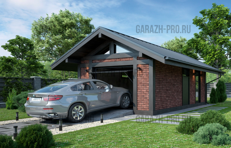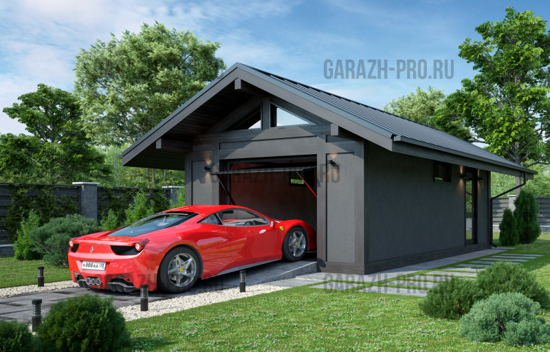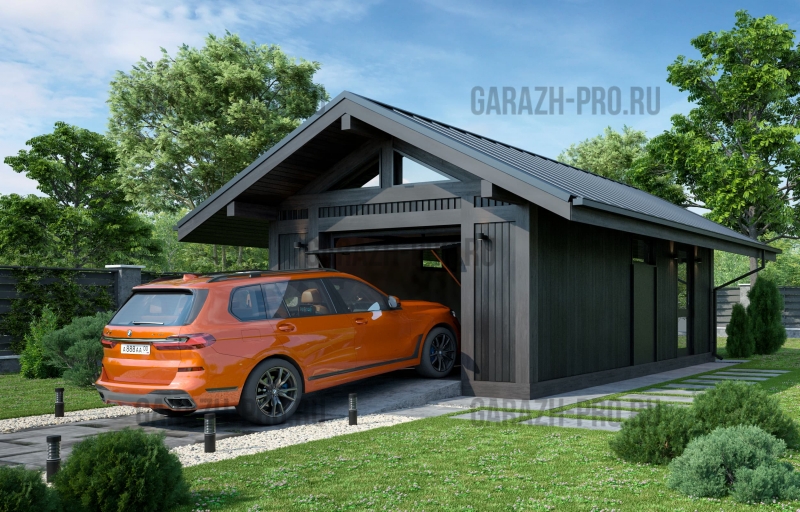 Современный гараж в стиле "шале" на 1 автомобиль.