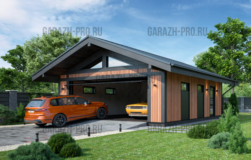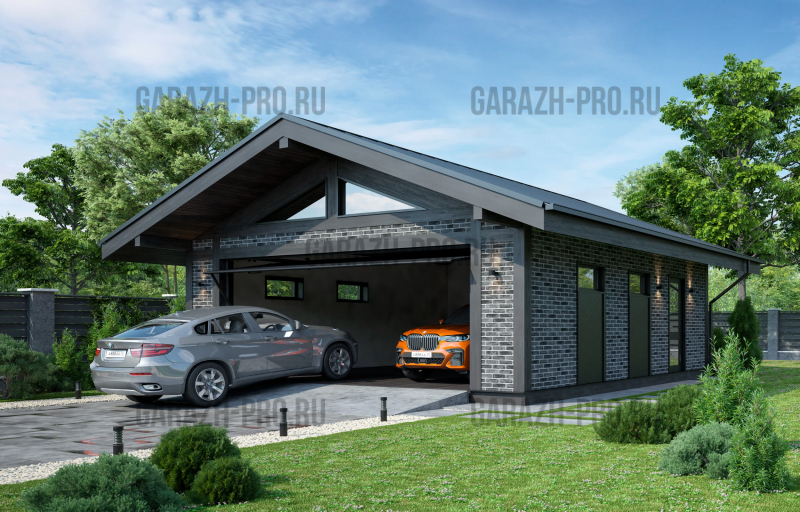 Современный гараж в стиле "шале" на 2 автомобиля.