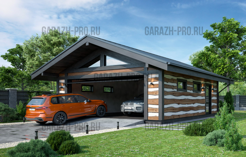 Современный гараж в стиле "шале" на 3-4 автомобиля.