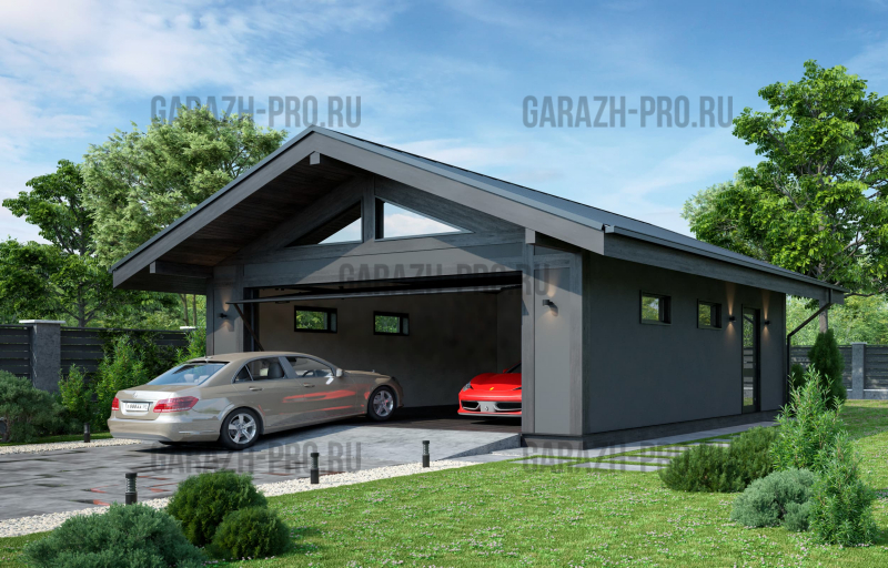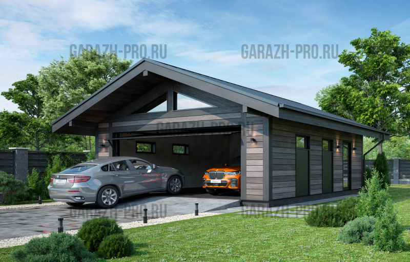 Современный гараж в стиле "шале" на 2 автомобиля.