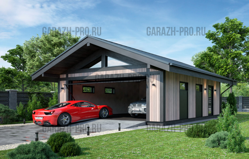 Современный гараж в стиле "шале" на 3-4 автомобиля.