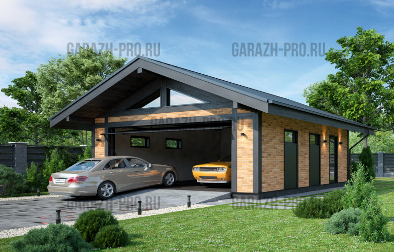 Современный гараж в стиле "шале" на 2 автомобиля.