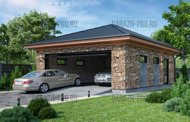 Отделка фасада вашего гаража натуральным камнем, если вам необходимо сохранить общий архитектурный стиль построек на участке.